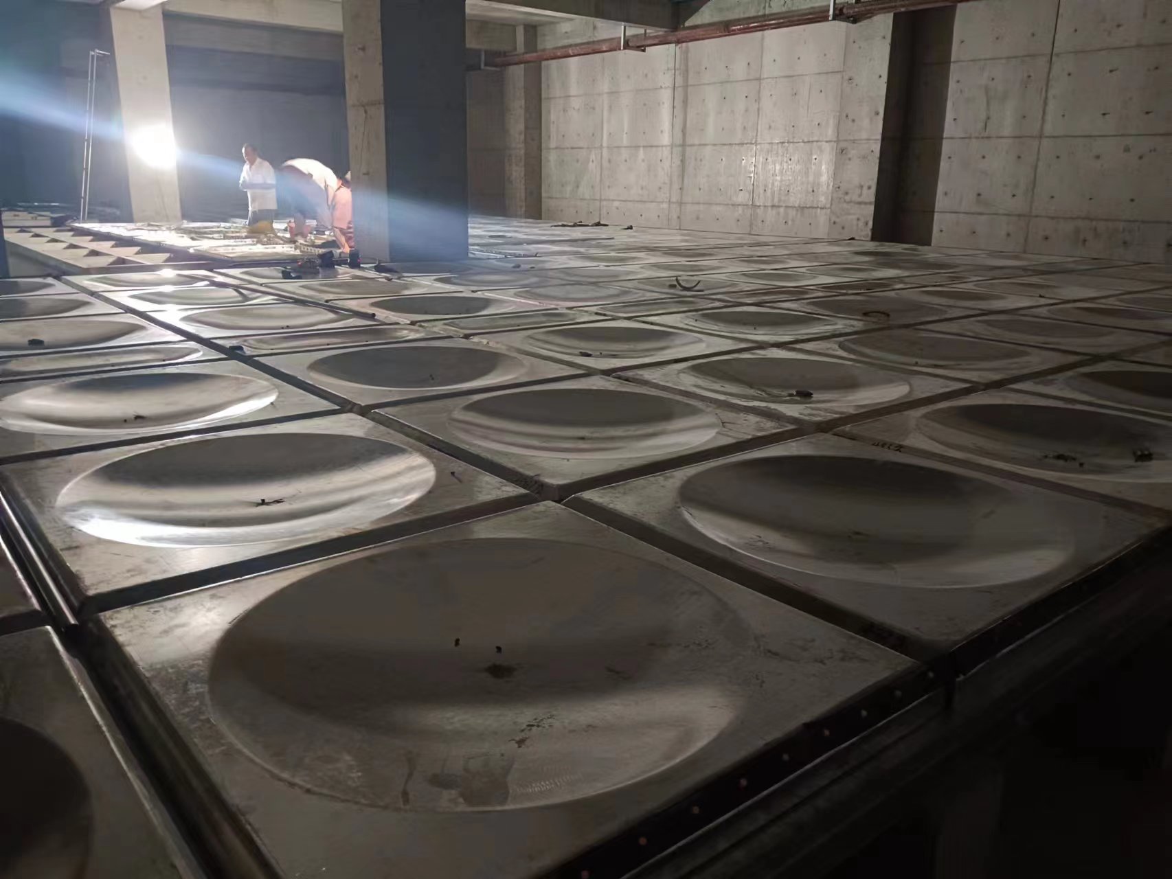 我司承接的內(nèi)蒙古自治區(qū)包頭市榮邦物流園項(xiàng)目的鍍鋅鋼板異型水箱已安裝試水完成。此水箱作為消防儲(chǔ)水使用。裝配式鍍鋅鋼板水箱是目前較為新型的水箱。該水箱制造、安裝不受土建施工影響,不用焊接設(shè)備,水箱表面采用熱鋅防腐處理,使水質(zhì)不受二次污染,并符合建筑產(chǎn)品標(biāo)準(zhǔn)化、系列化、工廠化要求。因其優(yōu)秀的抗氧化能力和較不銹鋼價(jià)格低的性能的越來(lái)越多的應(yīng)用到實(shí)際生活中。