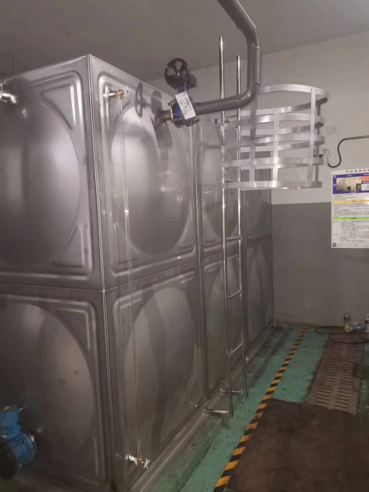 此項目水箱外爬梯加裝了防護裝置,為后期工作人員在水箱維護時的安全性起到了一定的防護作用。