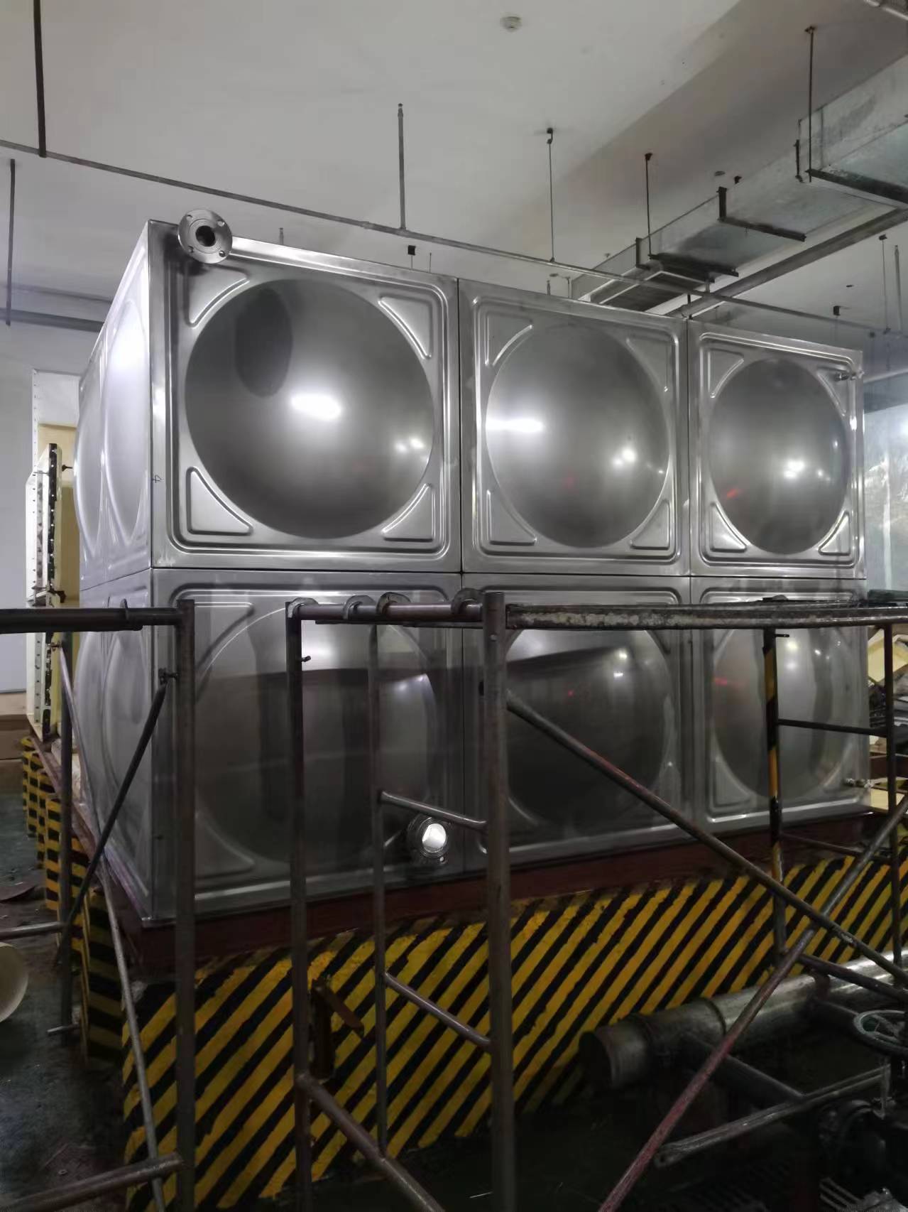 我司承接的北京中國電建國際大廈不銹鋼水箱項目已完工。不銹鋼焊接水箱為現場組合方式,強度高、密封性好,防止水質二次污染,永不滲漏,重量輕,外觀整潔、光亮、美觀、實用等特點。