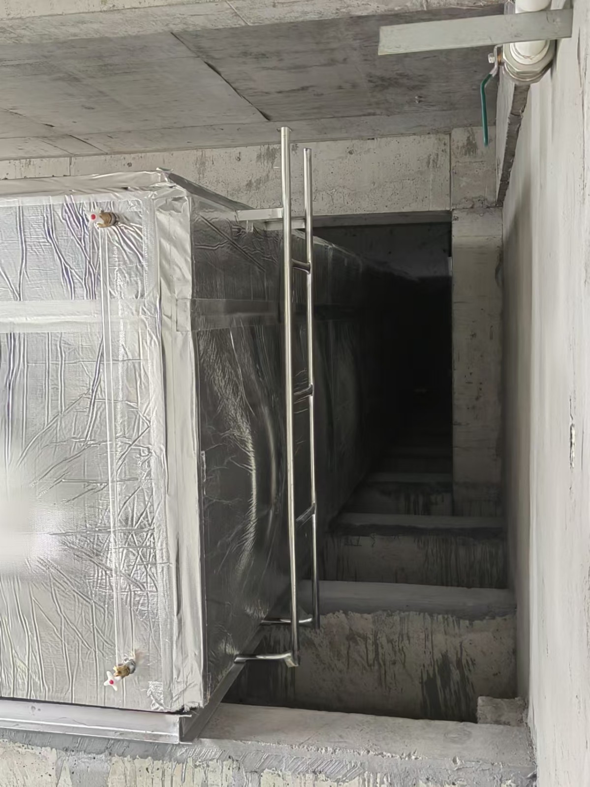 水箱為不銹鋼304材質,外表做了橡塑鋁箔布保溫層,鋁箔橡塑保溫材料為閉泡式結構,且表面平整光滑,所以外界空氣中的水汽很難滲透到材料之中,保冷保溫不必再添加隔汽層,從而獲得較佳的導熱系數,它的陰濕因子大于4.5×103,使它的整體既是保溫層又是防潮層。因此適用于多種防火要求較高的場所使用。