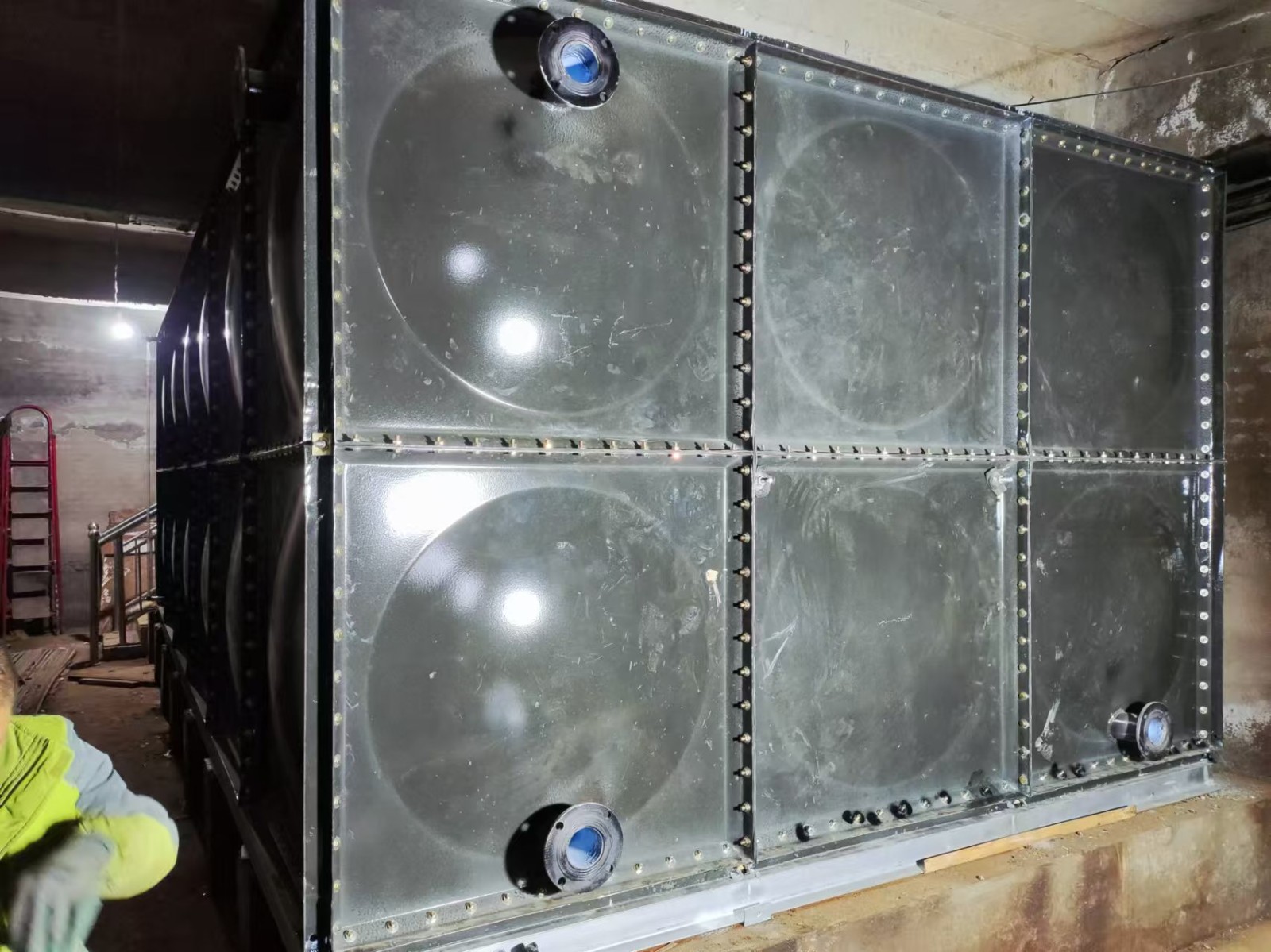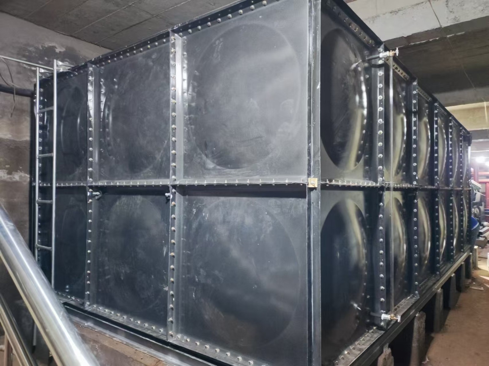 我司承接的河北省邢臺市寧晉縣東旺新村地下室生活飲用水項目,搪瓷鋼板水箱已安裝完成。搪瓷鋼板水箱的瓷面光滑容易清洗,耐腐蝕,而鋼板組裝結(jié)構(gòu),不易變形、抗震性強、抗沖擊力大。